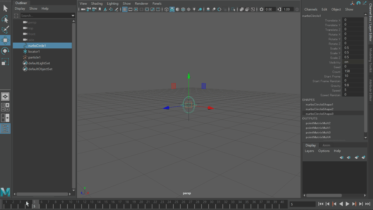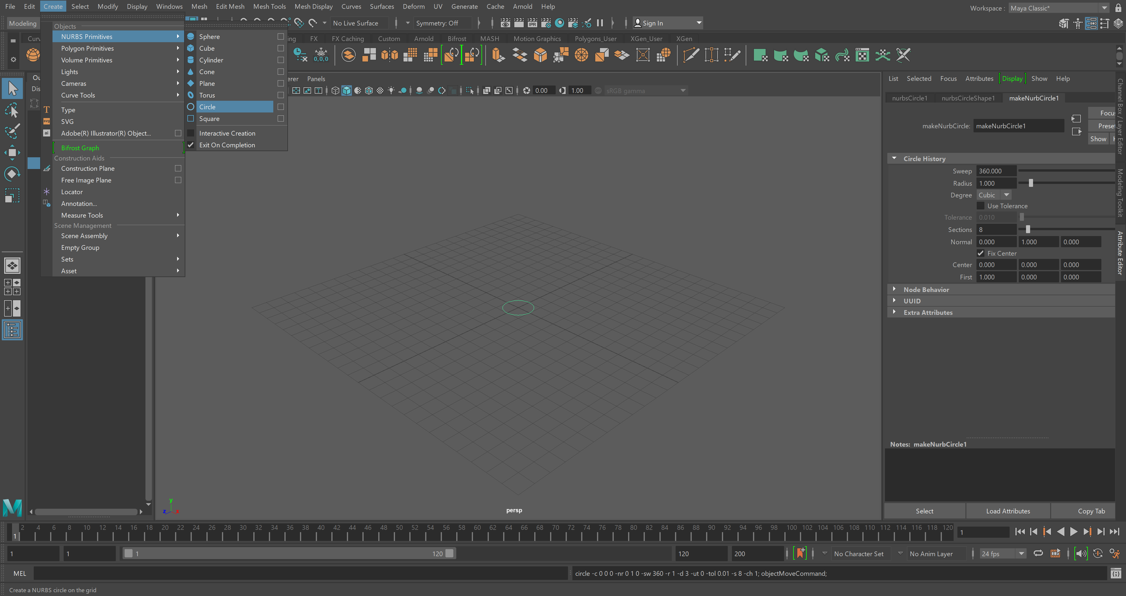 メニューバーからCreate > NURBS Primitives > Circleを実行します。