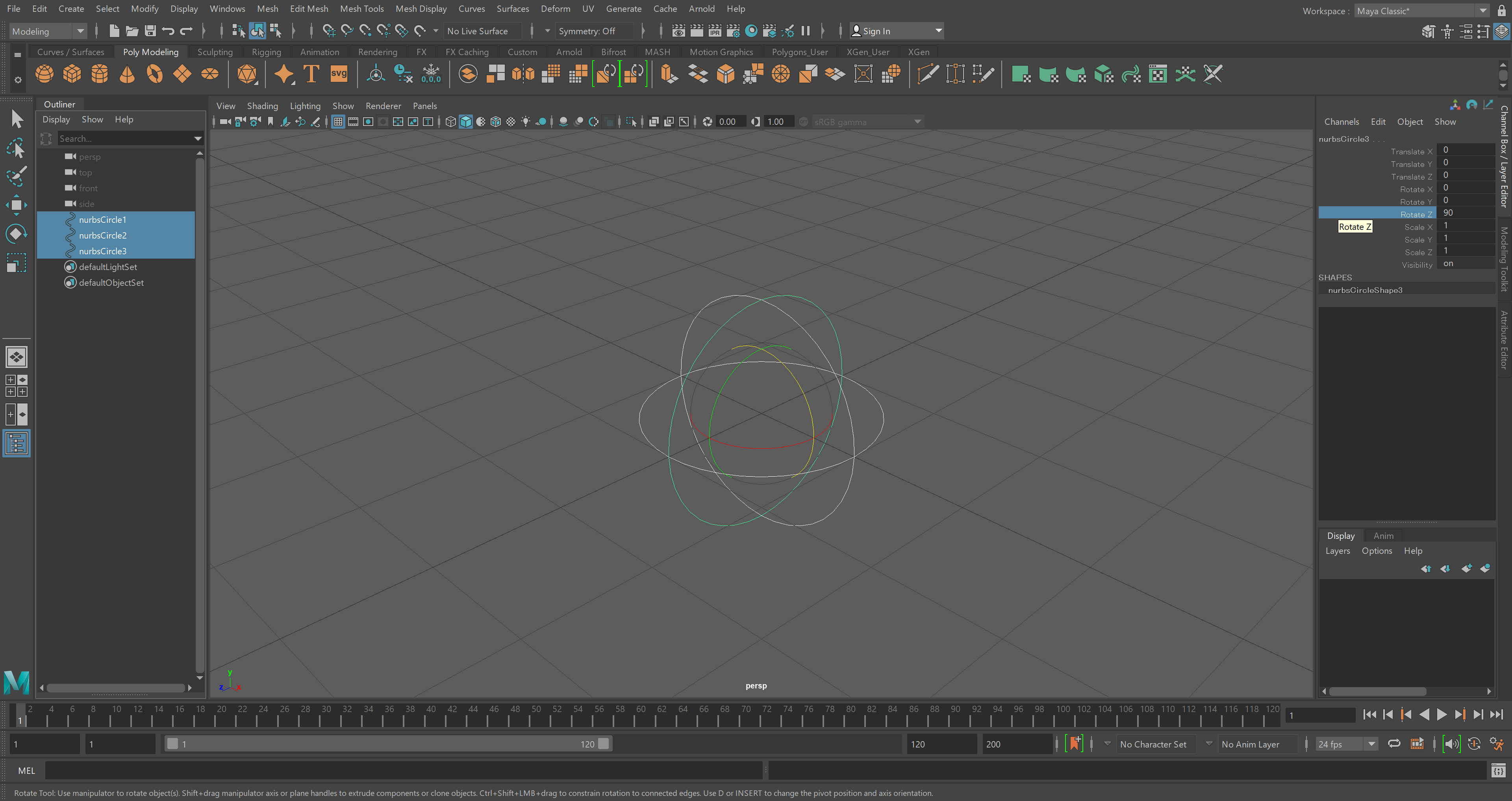 nurbsCircle3 | rotate | 0, 0, 90 |