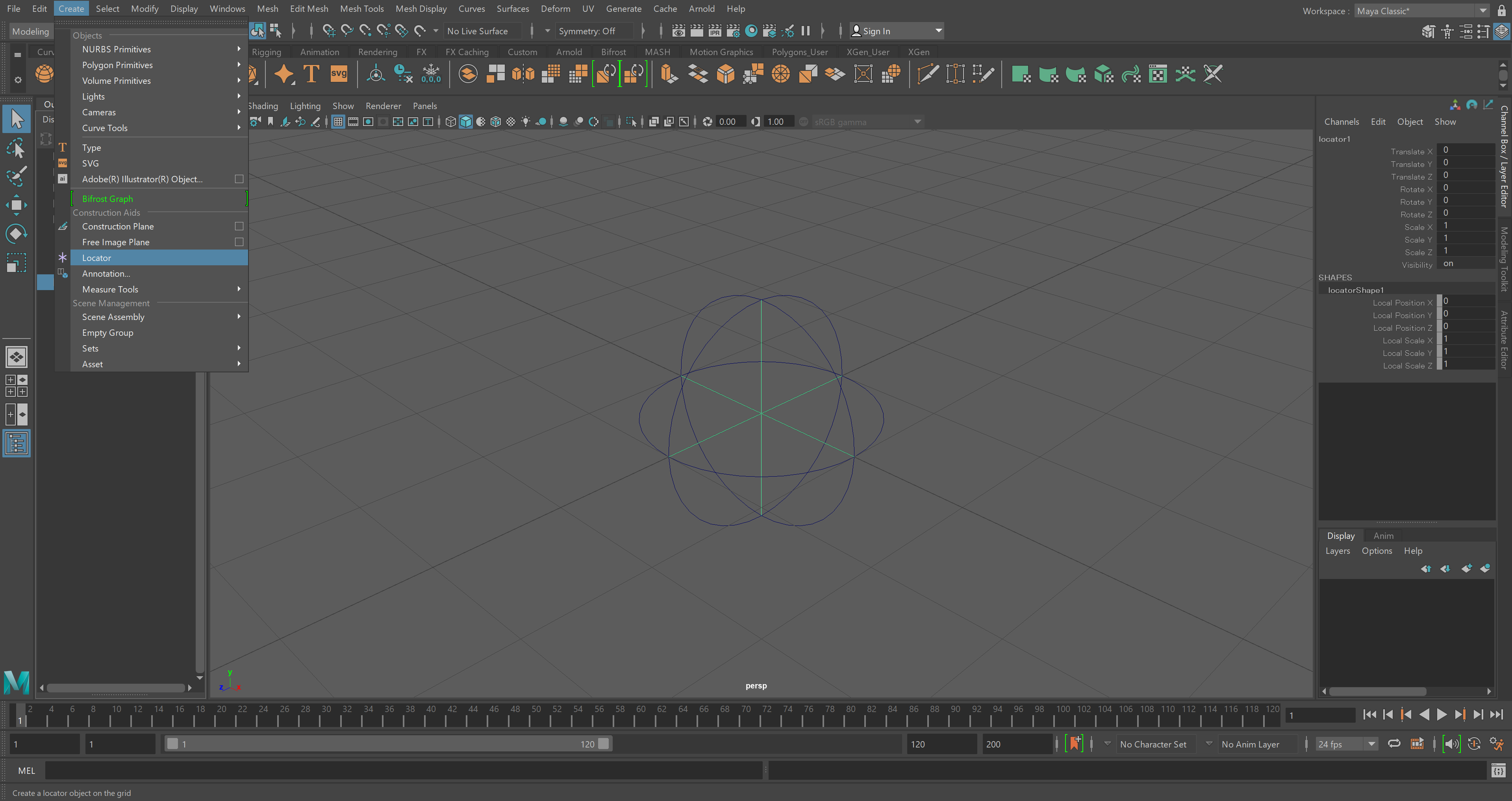 こちらは単純にロケーターで作成します。メニューバーからCreate > Locatorを実行します。