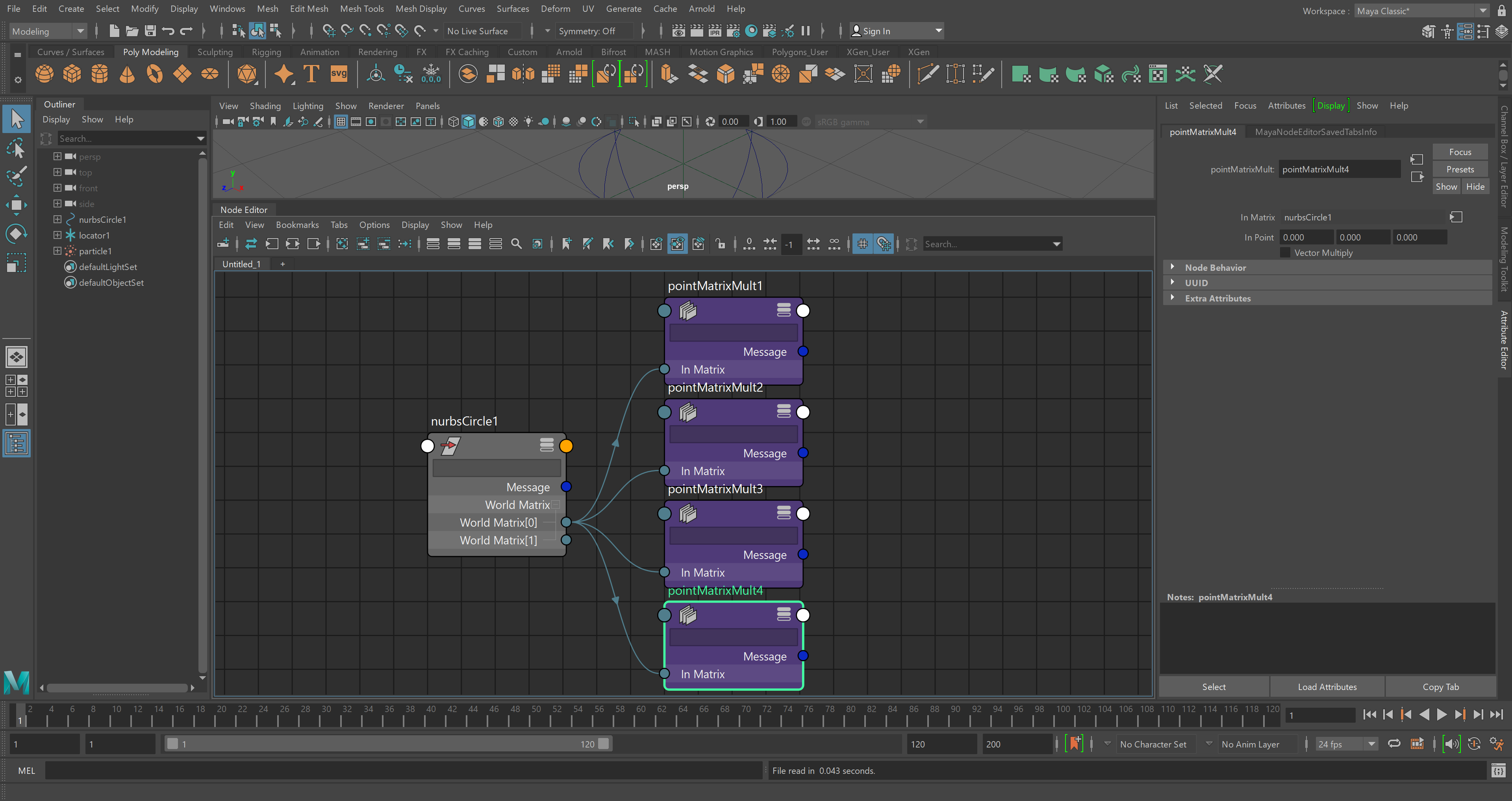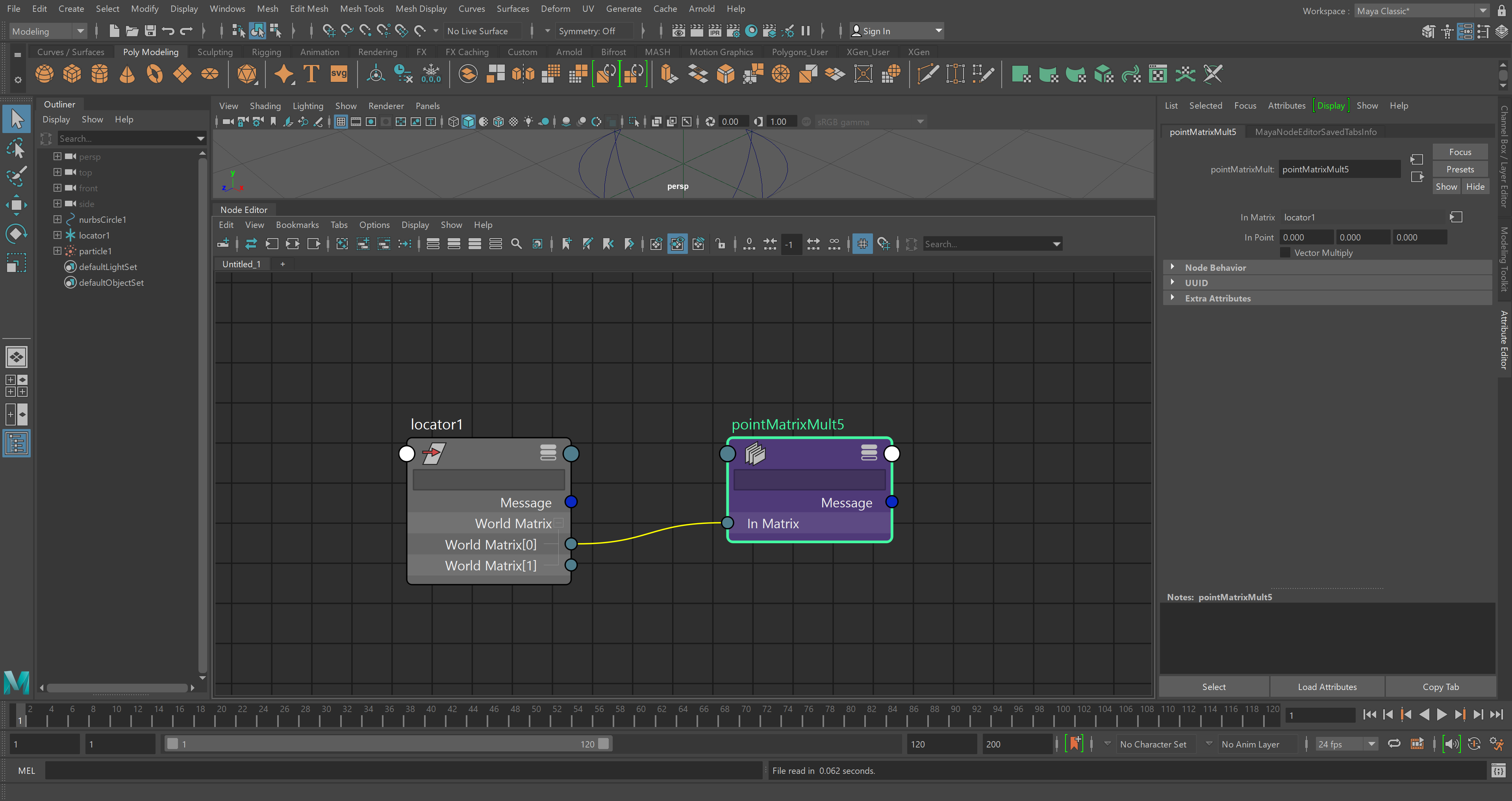 続いて同様に、pointMatirxMultノードを1つ作成します。