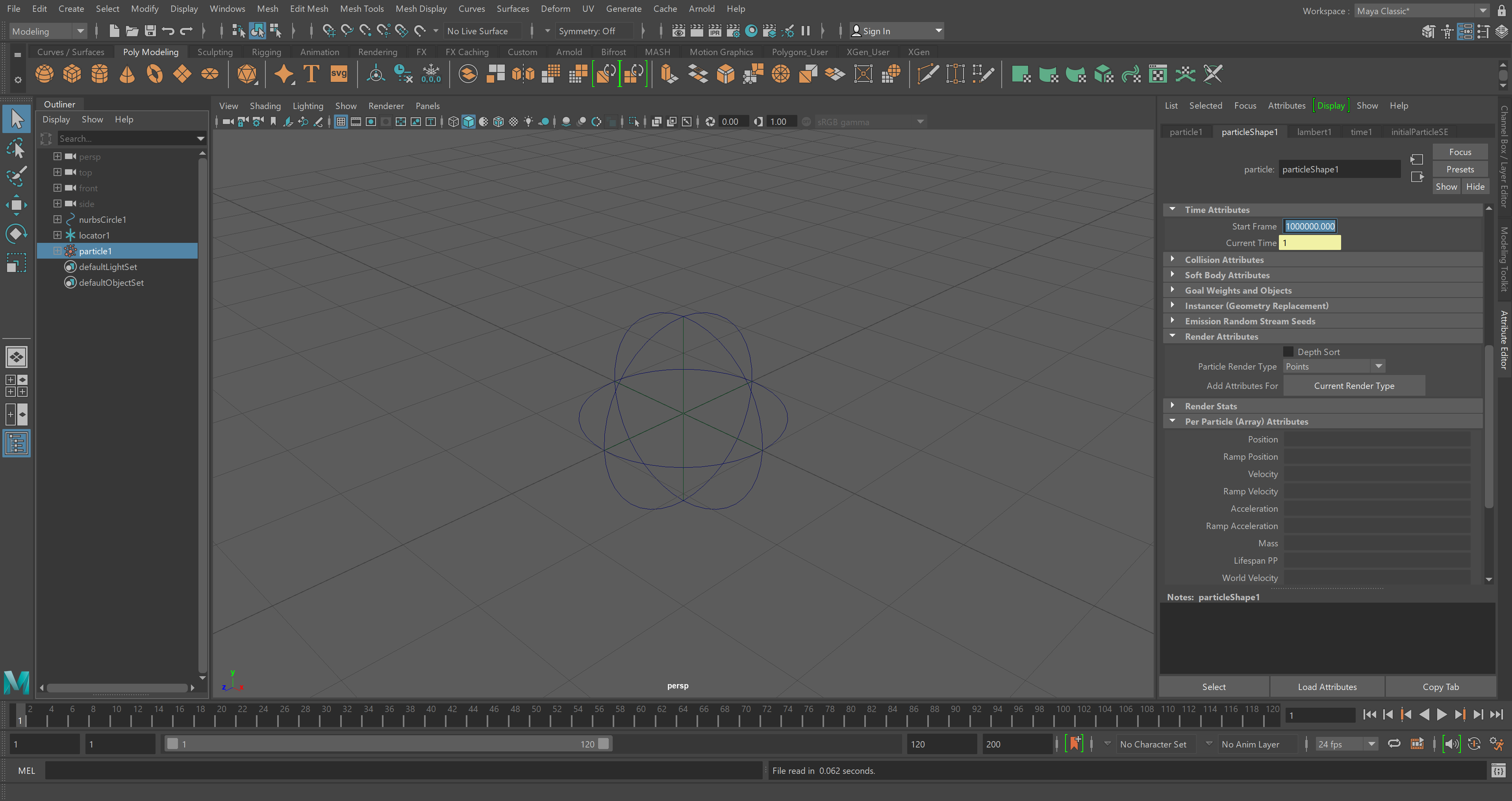 particleShape1 | particleRenderType | Streak (変更後Current Render Typeボタンをクリックします) |